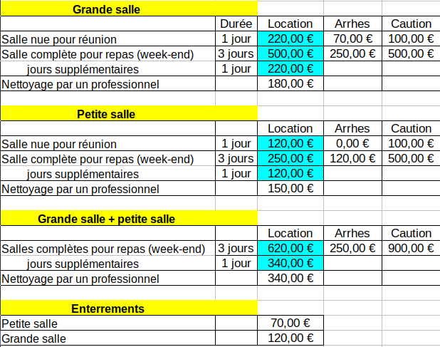 Tarif pour les locations jusqu'au 31 décembre 2026 |